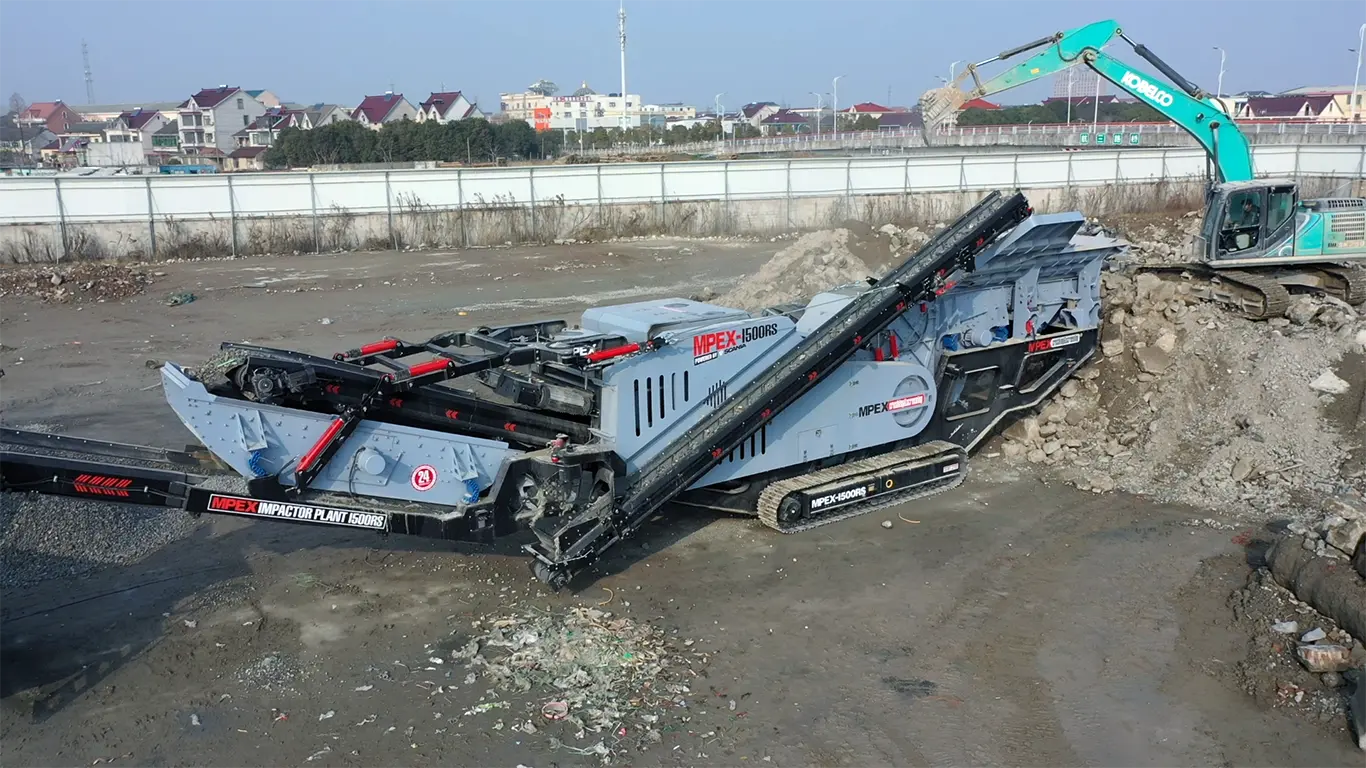 浙江杭州工地生產(chǎn)實(shí)景-油電一體反擊破I1300RSH+傾斜篩S1303