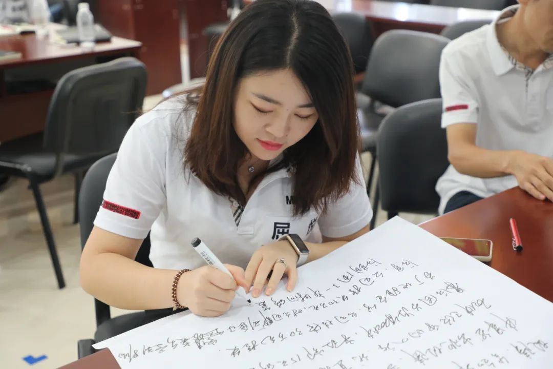 每個(gè)組根據(jù)老師提出的問題進(jìn)行激烈的討論,從個(gè)人、部門、公司角度提出解決方法。